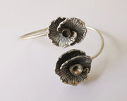 Flower wire bracelet cuff blank bezel Glass cabochon base Adjustable antique silver plated brass (8mm and 5mm ) G26031