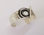 Hammered circles silver bracelet brass cuff blank bezel Glass cabochon base Adjustable antique silver brass (14mm blank) G25866