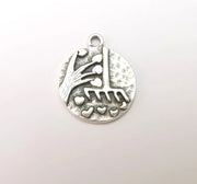 Heart Leaf Tree and Mop Charms Antique Silver Plated Charms (23x19mm) G28826