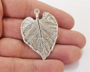 Leaf charm with cone round dangle cup bezel blank Antique silver plated brass charm (45x33mm) G25960