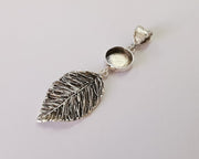 Leaf Dangle Pendant Blank Resin Bezel Mosaic Mountings Cabochon setting Antique Silver Plated Brass (85x24mm)(14mm Bezel Size) G25927
