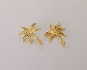 2 Palm tree earring stud base Shiny gold plated brass earring 1 pair (23x20mm) G25640