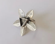 Leaf leaves silver ring setting blank cabochon mounting Adjustable ring base bezel Antique Silver Plated Brass (10mm) G26097