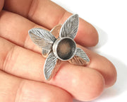 Leaf leaves silver ring setting blank cabochon mounting Adjustable ring base bezel Antique Silver Plated Brass (10mm) G26108