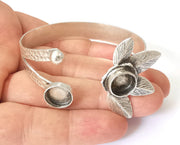 Leaves bracelet brass cuff blank bezel Glass cabochon base Adjustable antique silver plated brass (11mm and 10 mm Blanks ) G25184