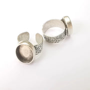 Oval Antique Silver Ring Blank Setting, Cabochon Mounting, Adjustable Resin Ring Base Bezels, Inlay Ring Mosaic Ring Bezel (18x13mm) G28606