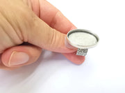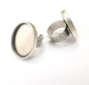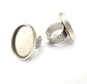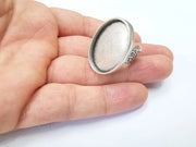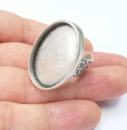 Oval Antique Silver Ring Blank Setting, Cabochon Mounting, Adjustable Resin Ring Base Bezels, Inlay Ring Mosaic Ring Bezel (30x22mm) G28582