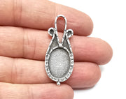 Oval Pendant Blanks, Resin Bezel Bases, Mosaic Mountings, Dry flower Frame, Polymer Clay base, Antique Silver Plated (18x13mm) G33299