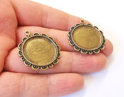 2 Frame Pendant Blank Antique Bronze Plated Pendant (36x32mm) (25mm Blank Size) G24953