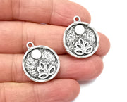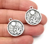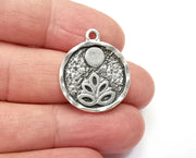 Lotus Full Moon Charms Round Night Pendant Antique Silver Plated Material : Nickel and lead free, Silver Plated Zinc Alloy (Zamac) Color: Antique Silver Size : 26x22 mm