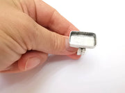 Rectangle Ring Setting Resin Ring Blank Cabochon Mounting Adjustable Dried Flower Base Bezel Antique Silver Plated Brass (25x15mm) G33595