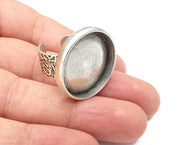 Round Ring, Flat Blank Setting, Cabochon Mounting, Adjustable Resin Base Bezels, Antique Silver Plated (25mm) G28642
