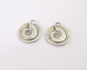 4 Ammonite round (double sided) charms Antique silver plated charms (23x19mm) G24403