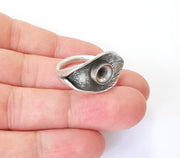 Silver Ring Blank Base Bezel Settings Cabochon Base Mountings Adjustable (8mm Blank) , Antique Silver Plated Brass G25176