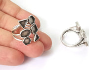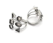 Geometric silver ring setting blank cabochon mounting Adjustable ring base bezel Antique Silver Plated Brass (8 and 6 mm blanks) G26123