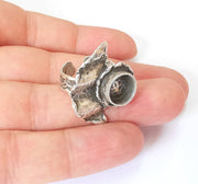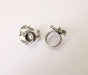 Silver Ring Blank Base Bezel Settings Cabochon Base Mountings Adjustable (10mm Blank) , Antique Silver Plated Brass G25150