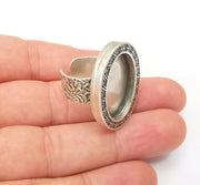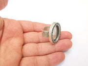 Oval Antique Silver Ring Blank Setting, Cabochon Mounting, Adjustable Resin Ring Base Bezels, Inlay Ring Mosaic Ring Bezel (25x18mm) G28568