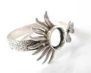 Flower bracelet brass cuff blank bezel Glass cabochon base Adjustable antique silver (20x15mm ) G24467