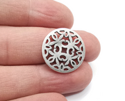 Filigree ,Round Charms, findings are made of nickel free and lead free antique silver plated zinc alloy metal. Size : 28 mm.