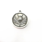 Thistle Charms, Silver Flower Charms, Boho Charms, Earring Charms, Silver Pendant, Necklace Parts, Antique Silver Plated 28x23mm G36237
