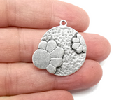 Flower Hammered Disc Dangle Charms, Antique Silver Plated Charms (32x32mm) G28976