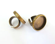 Hammered Ring Blank Setting Cabochon Base inlay Ring Backs Mounting Adjustable Ring Bezel (25mm blank) Antique Bronze Plated G21599