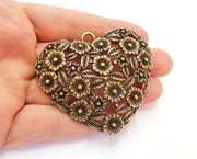 Heart Flower Leaf Pendant Antique Bronze Plated Pendant (60x66mm) G20685