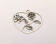 Heart Rose Butterfly Pendant Antique Silver Plated Pendant (51x46mm) G22678