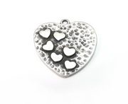 Hearts Charms Antique Silver Plated Hammered Charms (29x27mm) G28474