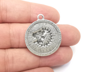 Lion charms are made of nickel free and lead free antique silver plated zinc alloy metal. Size : 31x27 mm.