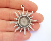 Sun Charms Blank Bezel Resin Bezel Mosaic Mountings Antique Silver Plated Charms (46x42mm) (16 mm Bezel Inner Size) G20388