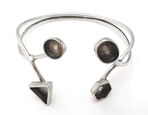 Geometric bracelet cuff blank bezel Glass cabochon base Adjustable antique silver plated brass G26151