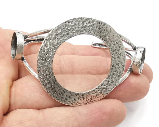 Circles silver bracelet brass cuff blank bezel Glass cabochon base Adjustable antique silver brass (10 mm blank) G29078