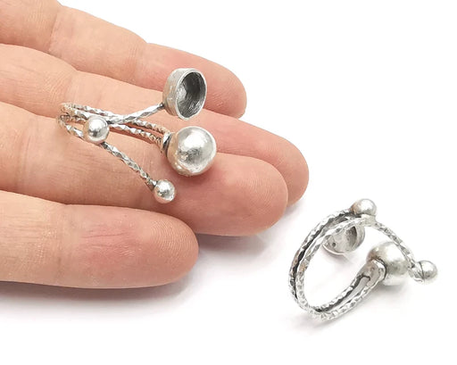 Ball Spare silver ring setting blank cabochon mounting adjustable ring base bezel Antique silver plated brass (8 mm) G26180