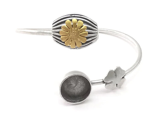 Flower bracelet brass cuff blank bezel Glass cabochon base Adjustable antique silver and gold plated brass (8 mm blank ) G26218