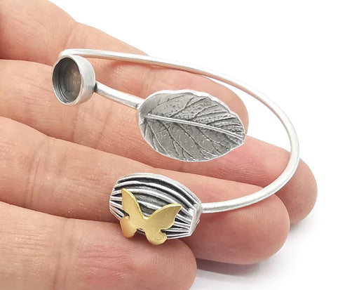 Butterfly leaf bracelet brass cuff blank bezel Glass cabochon base Adjustable antique silver and gold plated brass (8 mm blank ) G26207