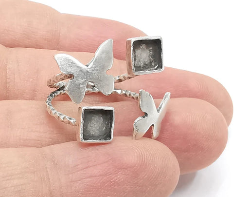 View full detailsButterfly silver ring setting blank cabochon mounting adjustable ring base bezel Antique silver plated brass (6mm) G26171