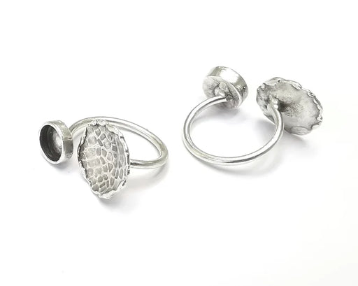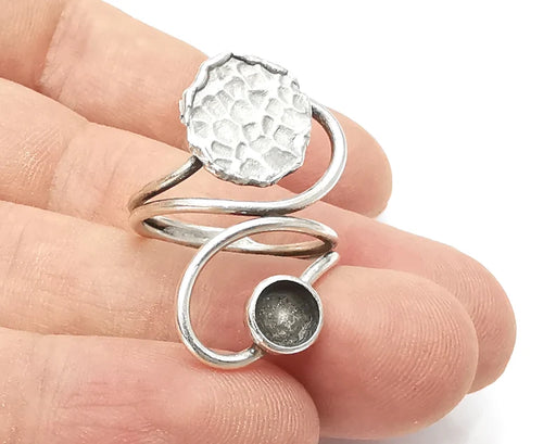 Disc hammered silver ring setting blank cabochon mounting adjustable ring base bezel Antique silver plated brass (6mm) G26167