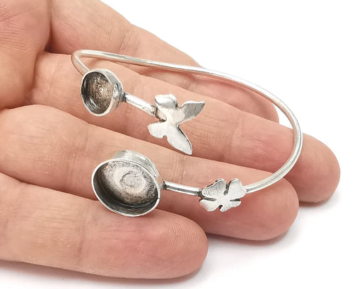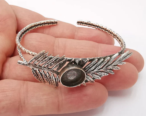 View full detailsLeaf leaves branch silver bracelet brass cuff blank bezel Glass cabochon base Adjustable antique silver brass (8mm) G26184