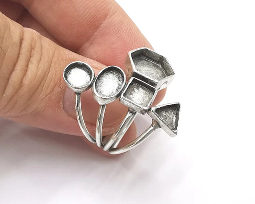 Geometric blank silver ring setting cabochon mounting adjustable ring base bezel Antique silver plated brass G26172