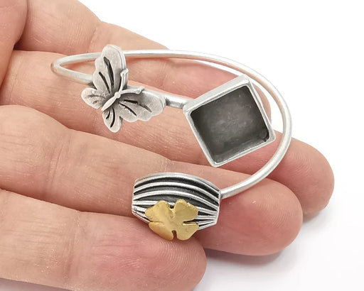 Butterfly flower bracelet brass cuff blank bezel Glass cabochon base Adjustable antique silver and gold plated brass (8 mm blanks ) G26205