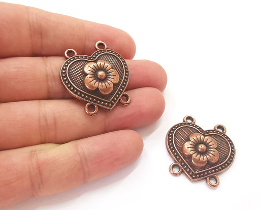 4 Heart flower connector charms Antique copper plated charms (32x30mm) G25744