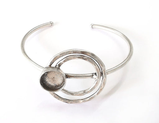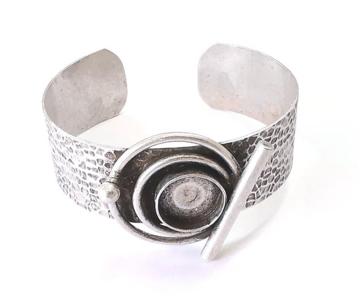 Hammered circles silver bracelet brass cuff blank bezel Glass cabochon base Adjustable antique silver brass (14mm blank) G25866