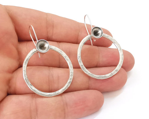 Hammered Earring Blank Base Settings Silver Resin Cabochon Base inlay Blank Mountings Antique Silver Plated Brass (8mm blank) 1 Set G25883