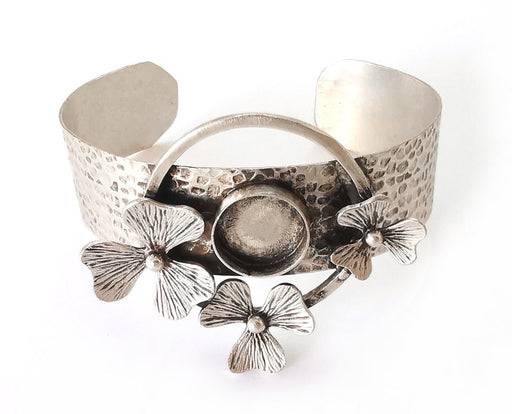 Flowers bracelet brass cuff blank bezel Glass cabochon base Adjustable antique silver( 15 mm ) G25511
