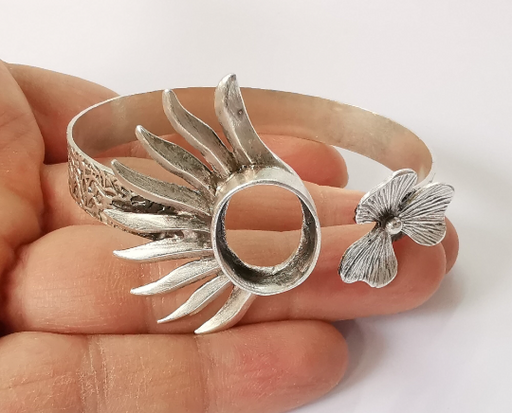 Flower bracelet brass cuff blank bezel Glass cabochon base Adjustable antique silver (14mm ) G24444