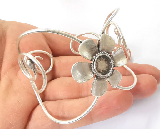 Flower bracelet brass blank Resin cuff Dry flower inlay blank Cuff bezel Glass cabochon base Adjustable antique silver(10mm + 8mm ) G24442