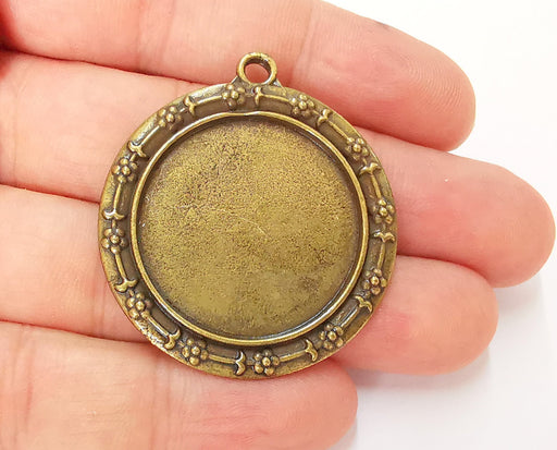 Flowers Frame Pendant Blank Antique Bronze Plated Pendant (42x40mm) (29mm Blank Size) G22767