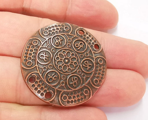 2 Antique Copper Circle Connector Charms Antique Copper Plated Charms (35mm) G22801