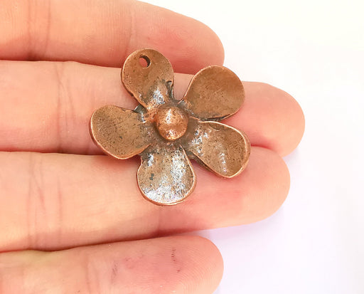2 Flower Charms Antique Copper Plated Charms (35x33mm) G21972
